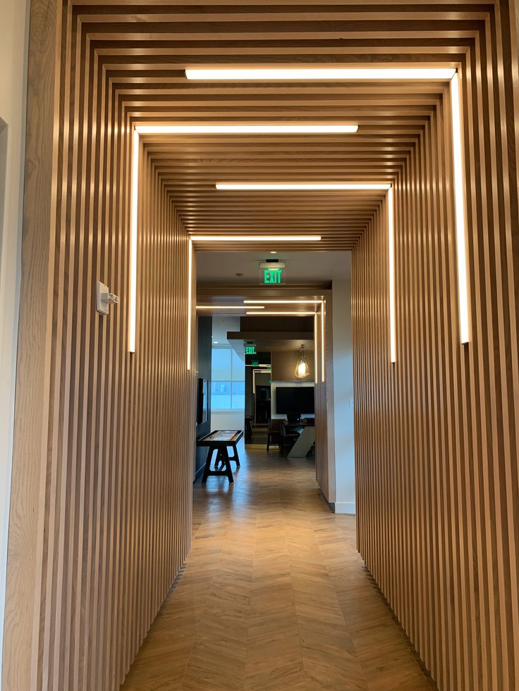 – دمج الإضاءة مع الألواح الخشبية لخلق تأثيرات بصرية